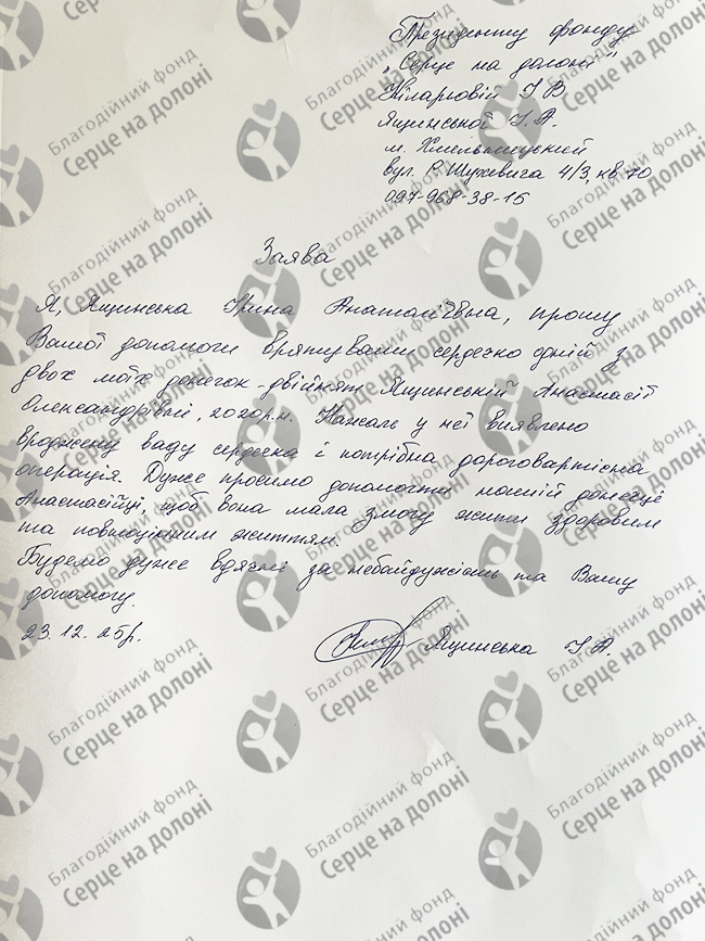 З проханням надати допомогу у зборі коштів для рятування сердечка доньки до Фонду звернулася мати Анастасії. Ось її звернення.